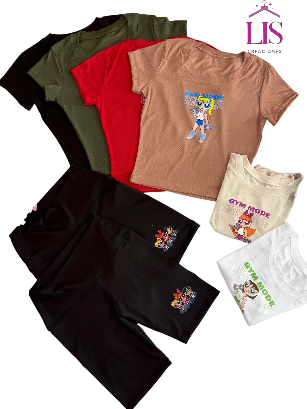 – 6 Biker lycra (1 al 6) + 6 Baby tee chicas super poderosas talle unico